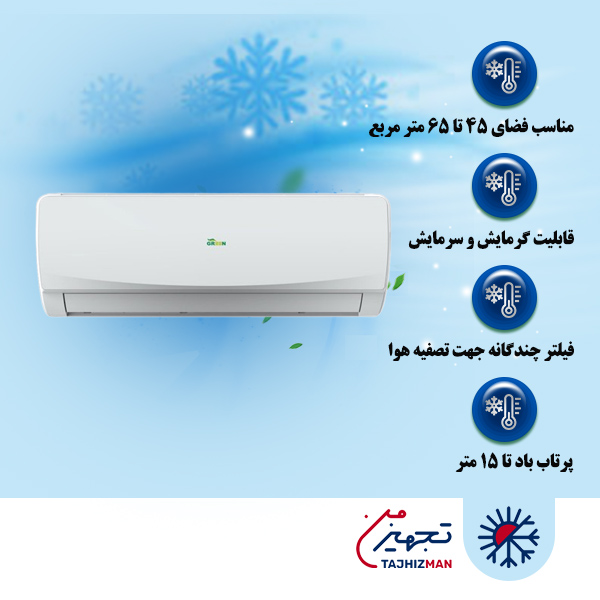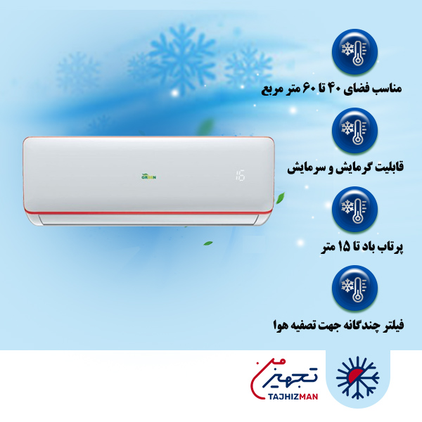 کولرگازی ۳۰۰۰۰ گرین مدل ON/OFF-R۴۱۰: این کولر دارای کمپرسور روتاری بوده و پرتاب باد تا ۱۵ متر را به خود اختصاص داده است. منظور از عبارت ON/OFF خاموش و روشن شدن کولر در دماهای مختلف است. زمانی که دمای محیط به حد مطلوب برسد کولر خاموش شده و زمانی که دمای محیط گرم شود، کولر مجدداً روشن میشود.