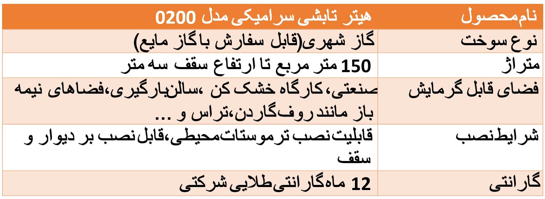 این هیتر باقابلیت تعویض هوای کافی، فواصل توصیهشده از مواد قابل اشتعالزا را طبق جدول پیوست دارا باشد.